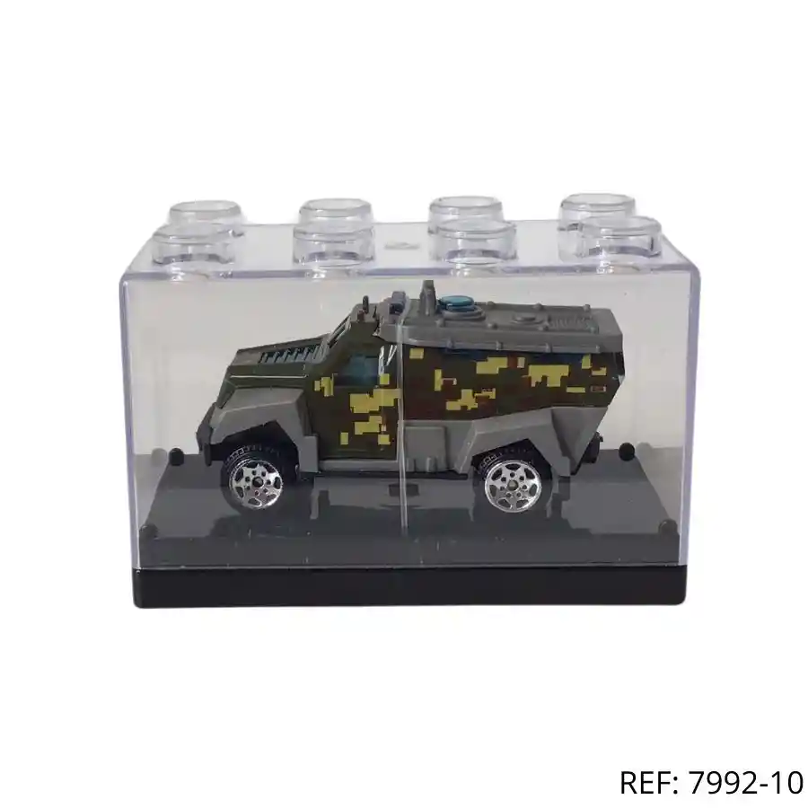 Camioneta militar metálica en estuche tipo bloque. ¡Perfecta para misiones de aventura y coleccionistas!