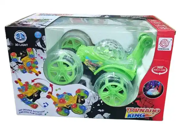 Carro Loco Recargable Control Remoto Acrobacias 360 Juguete Espectacular carro a control remoto con 15 metros de alcance, capacidad de giro de 360 grados,ideal para divertirse jugando con este vehículo durante horas dado que trae una bateria recargable de gran duracion, incluye luces en las llantas que le dan una hermosa apariencia y ademas trae un circuito emisor de sonidos que haran mas divertido interactuar con este. El vehiculo incluye en su parte delantera con un sistema de 360 grados que permite que pueda cambiar de direccion facilmente, hasta cuando este se encuentre de cabeza ya que incluye un par de llantas en la parte superior trasera que al apoyarse en estas pueda seguir andando y asi no tendra que parar de jugar para ir a reacomodarlo. CARRO LOCO NUEVO SIN CAJA INCLUYE: Cargador toma corriente a 110vt Control remoto inalambrico funciona con 2 pilas AA no incluidas Carro
