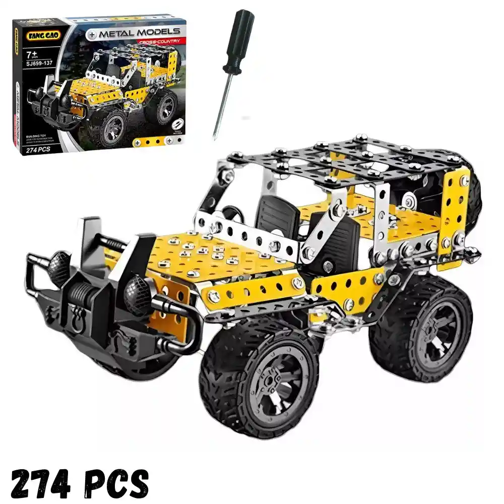 El Jeep Armatodo Cross-Country es mucho más que un juguete: es un desafío de construcción para pequeños ingenieros y amantes de los vehículos todoterreno. Con 274 piezas metálicas y plásticas, este set permite armar un resistente carro tipo Jeep, ideal para el juego creativo y el desarrollo de habilidades. Características: - Diseño Realista: El modelo final imita la apariencia robusta de un Jeep todoterreno, con detalles auténticos. - Material de Calidad: Piezas metálicas combinadas con componentes plásticos duraderos para una estructura sólida y resistente. - Herramientas Incluidas: Viene con las herramientas necesarias para el armado, permitiendo así experimentar el mundo del ensamblaje mecánico. - Fomenta el Aprendizaje: Ideal para desarrollar la coordinación mano-ojo, el pensamiento lógico, la paciencia y la motricidad fina. Set incluye: - 274 piezas para ensamblar - Ruedas, ejes y estructura del Jeep - Herramientas tipo llave y destornillador - Manual de instrucciones paso a paso