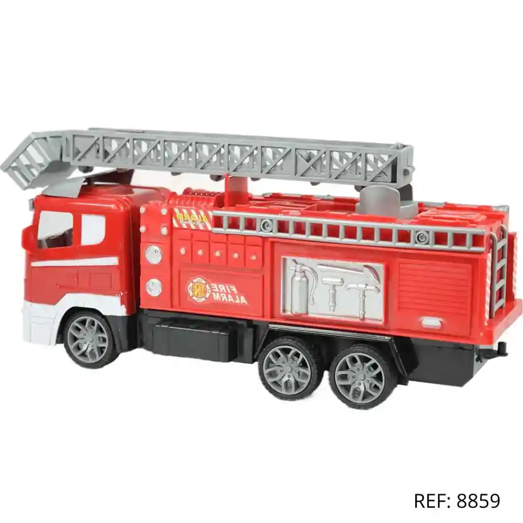 Camión de bomberos RC con escalera, diseño detallado y frecuencia 27 MHz. Excelente calidad y fácil de controlar para que los niños disfruten horas de diversión.