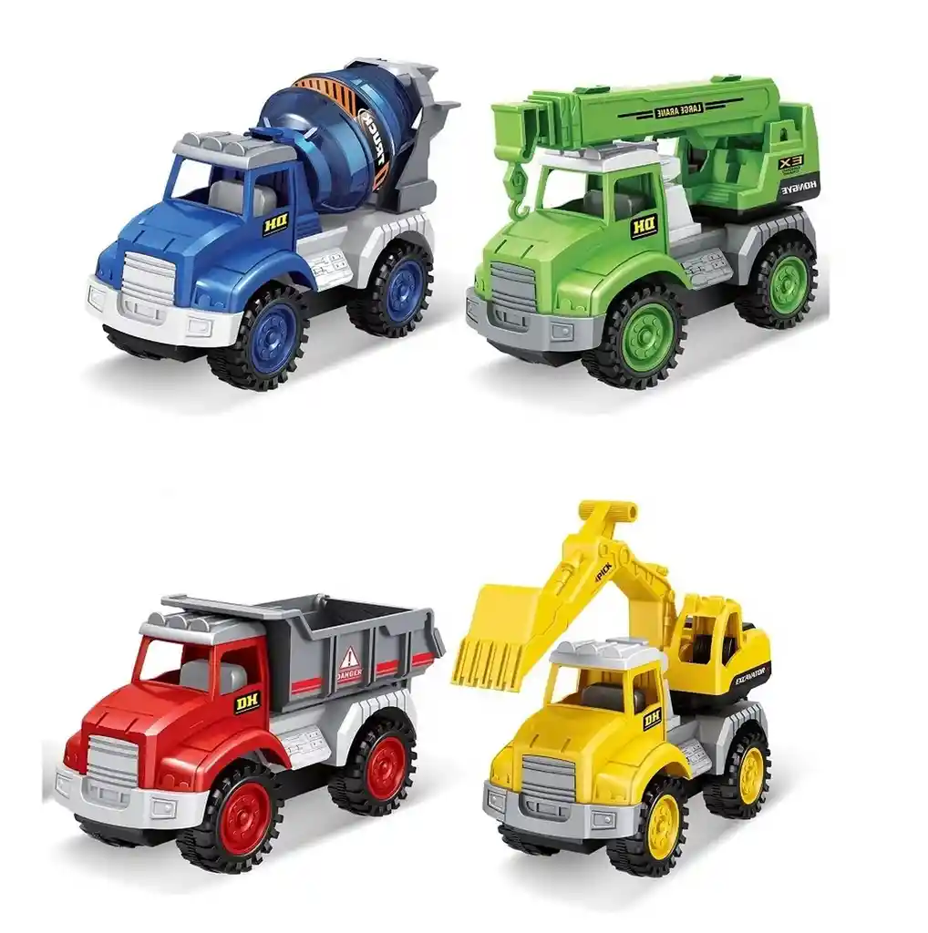 Esta hermosa y divertida colección de carros de construcción es ideal para que tu hijo se divierta mientras aprende. Cada vehículo está diseñado para ser fácil de manejar, lo que lo convierte en el primer auto perfecto para tu pequeño, ayudándole a desarrollar la coordinación mano-ojo, la motricidad fina y la cognición a través del juego. Es la opción ideal para fomentar la imaginación y la exploración, mientras tu hijo se sumerge en el emocionante mundo de la construcción. // Nota : el precio corresponde a 4 carros de construcción // Ficha Técnica: Dimensiones del producto: 10 cm x 8 cm x 5 cm Sistema de funcionamiento : Impulso Material: Plástico ABS No toxico Edad Recomendada: +3 Años Referencia: C3929 Certificado de conformidad: E5-0359-2021 ** _Para defectos de fábrica o retractos: \_Por favor revise el producto apenas lo reciba y antes de usarlo. No aplican ley de retracto o defectos de fábrica luego de usar el producto. Se manejan máximo 5 días para reportar defectos de fábrica (por ejemplo, producto funciona mal, piezas faltantes, rotas, etc). Para hacer efectiva la devolución el producto debe devolverse con el empaque original, el cual debe estar en buen estado, incluir todos los documentos y las partes completas y sin daños.