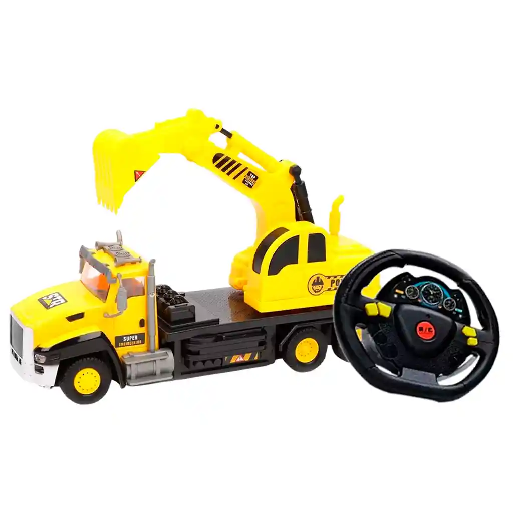 odelo controlado por radio de un automóvil de trabajo . Las direcciones de movimiento (hacia adelante y hacia atrás , así como los giros a la derecha y a la izquierda) se establecen en el juguete presionando las palancas correspondientes del control remoto. Durante el juego, los faros se encienden. El cucharón se puede girar 360 grados, bajar y levantar manualmente. El juguete funciona con 6 pilas AA de 1,5 V (4 para el coche y 2 para el mando a distancia). Las baterías se compran por separado. El tamaño de la máquina (LxWxH) es de 24x7x12 cm aprox .El producto está hecho de plástico. Edad recomendada: 6 años + Operación completa: adelante, atrás, girar a la izquierda a la derecha, control de 5 canales Funciona con pilas AA no incluidas. Con función de control de dirección.