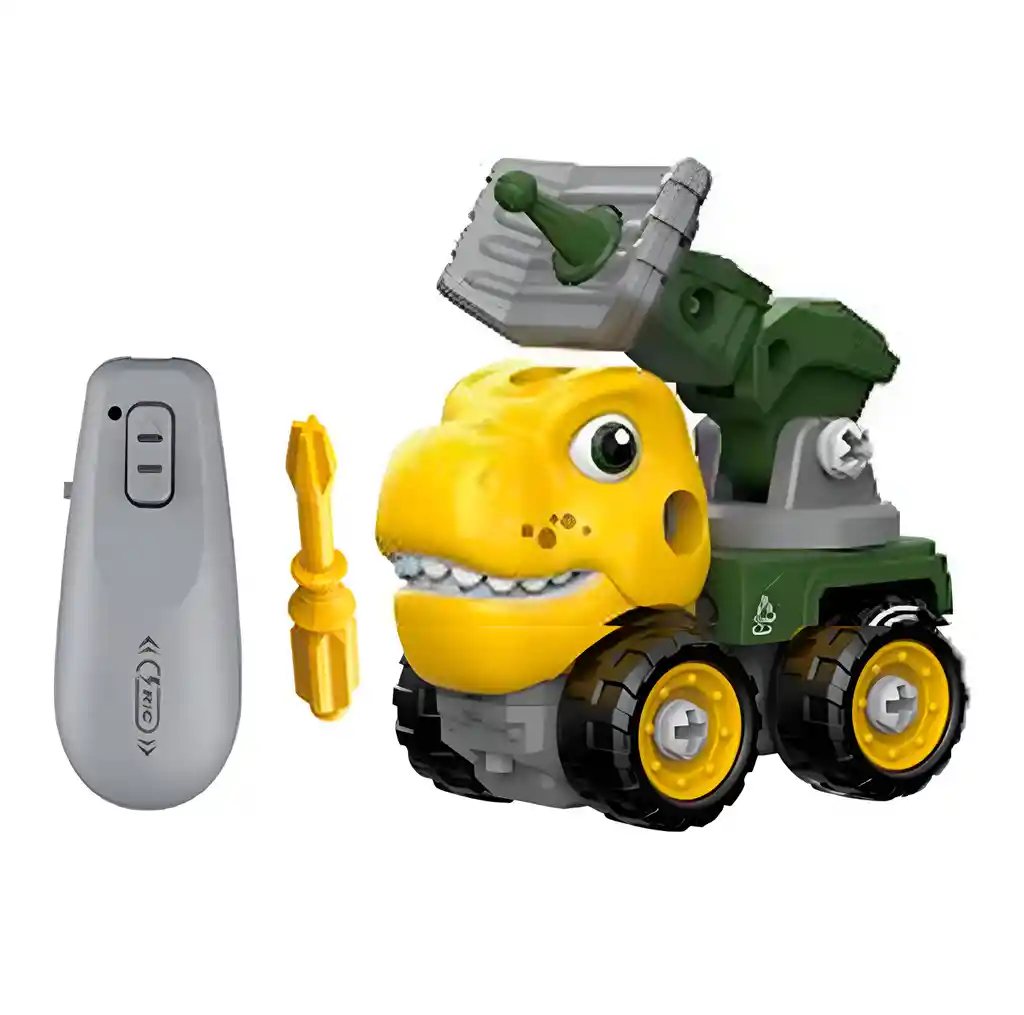 Este camión con carrocería inspirada en dinosaurios ofrece una experiencia de juego divertida y creativa, permitiendo a los niños armar y desarmar el vehículo usando el destornillador incluido. Su control es fácil de usar, con solo dos botones que dirigen el camión hacia adelante o hacia atrás, haciendo que sea perfecto para manos pequeñas y brindando horas de entretenimiento mientras estimula la imaginación y habilidades motoras. /// El juguete incluye baterías /// Ficha Técnica: Dimensiones del carros : 14 cm x 14 cm x 10 cm Material: Plástico ABS no toxico Edad recomendada + 3 Años Fuente de energía del carro: 2 Baterías AAA ( Incluidas) Dimensiones del control: 12 cm x 4 cm x 3 cm Fuente de energía: 2 Baterías AA ( Incluidas) Certificado de conformidad: E5-0359-2021 Referencia: C4032 ** _Para defectos de fábrica o retractos: \_Por favor revise el producto apenas lo reciba y antes de usarlo. No aplican ley de retracto o defectos de fábrica luego de usar el producto. Se manejan máximo 5 días para reportar defectos de fábrica (por ejemplo, producto funciona mal, piezas faltantes, rotas, etc). Para hacer efectiva la devolución el producto debe devolverse con el empaque original, el cual debe estar en buen estado, incluir todos los documentos y las partes completas y sin daños.