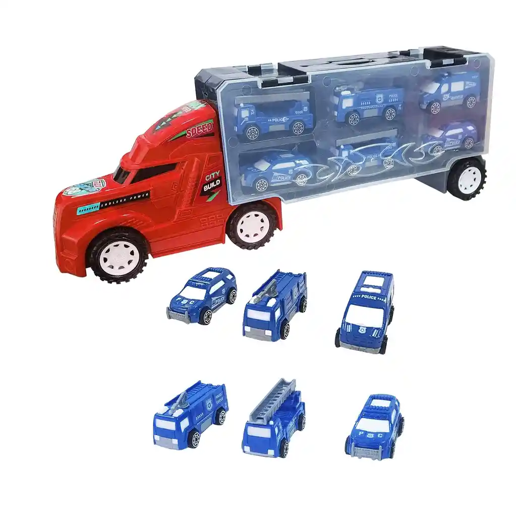 Esta emocionante colección de vehículos de transportes Perfecto para entretener a los niños con diversión y emoción Ficha Técnica: Dimensiones del carros : 7 cm x 3 cm x 3 cm Dimensiones de la tracto mula: 37 cm x 14 cm x 6 cm Material: Plástico ABS no toxico Edad recomendada + 3 Años Referencia: 399-354D Certificado de conformidad: CS-LCO-13233-2021S2/432 ** _Para defectos de fábrica o retractos: \_Por favor revise el producto apenas lo reciba y antes de usarlo. No aplican ley de retracto o defectos de fábrica luego de usar el producto. Se manejan máximo 5 días para reportar defectos de fábrica (por ejemplo, producto funciona mal, piezas faltantes, rotas, etc). Para hacer efectiva la devolución el producto debe devolverse con el empaque original, el cual debe estar en buen estado, incluir todos los documentos y las partes completas y sin daños.