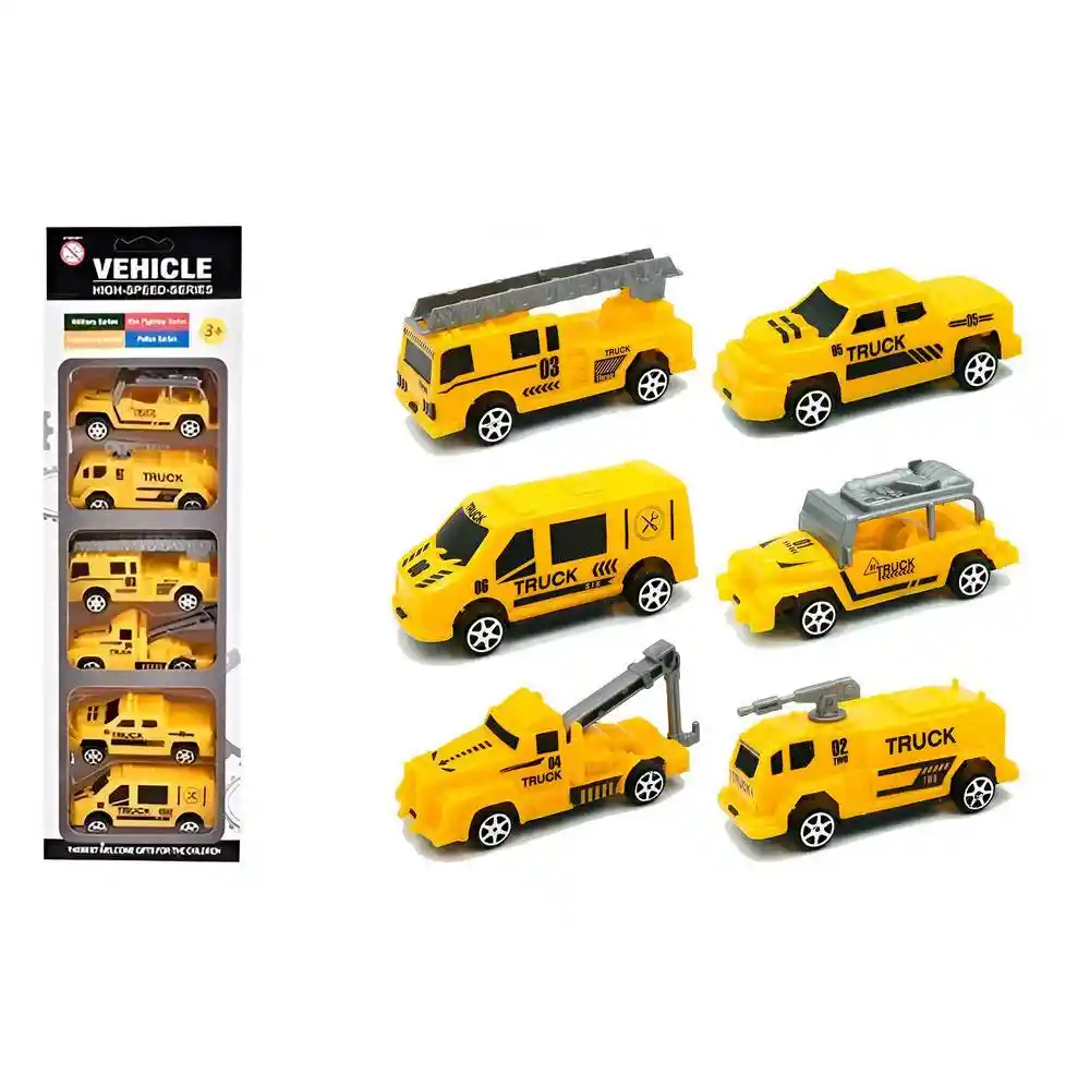 Explora el mundo de la construcción con nuestra colección de camiones de juguete de 6 unidades, diseñados con un sistema de impulso asistido para brindar horas de diversión sin límites. Cada camión presenta detalles auténticos, como grúas, volquetes y excavadoras, perfectos para recrear obras en miniatura y fomentar la imaginación. Con esta colección, los niños podrán desarrollar habilidades motoras, creatividad y trabajo en equipo mientras simulan emocionantes proyectos de construcción. ¡Ideal para pequeños constructores en busca de aventuras! Ficha Técnica: Material: Plástico ABS Dimensiones del empaque: 35 cm x 11 cm x 4 cm Dimensiones del carro : 9 cm x 4 cm x 3 cm Apto para niños + 3 Años Referencia: VE00106 Certificado de conformidad: CS-LCO-13233-2021S2/432 Términos de garantía: Para defectos de fábrica o retractos: Por favor revise el producto apenas lo reciba y antes de usarlo. No aplican ley de retracto o defectos de fábrica luego de usar el producto. Se manejan máximo 5 días para reportar defectos de fábrica (por ejemplo, producto funciona mal, piezas faltantes, rotas, etc). Para hacer efectiva la devolución el producto debe devolverse con el empaque original, el cual debe estar en buen estado, incluir todos los documentos y las partes completas y sin daños.