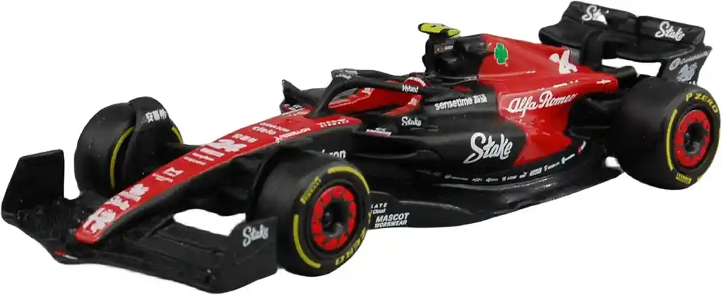 Carro coleccionable Fórmula 1 oficial del Team Bburago Alfa Romeo, modelo Zhou Guanyu F1. Este detallado modelo a escala captura a la perfección el diseño y la esencia del monoplaza utilizado por el talentoso piloto Zhou Guanyu en la temporada de Fórmula 1. Fabricado con materiales de alta calidad y acabados impecables, es un artículo imprescindible para coleccionistas y fanáticos de la máxima categoría del automovilismo. Ideal para exhibir o como regalo para los apasionados de la velocidad y la ingeniería de precisión.