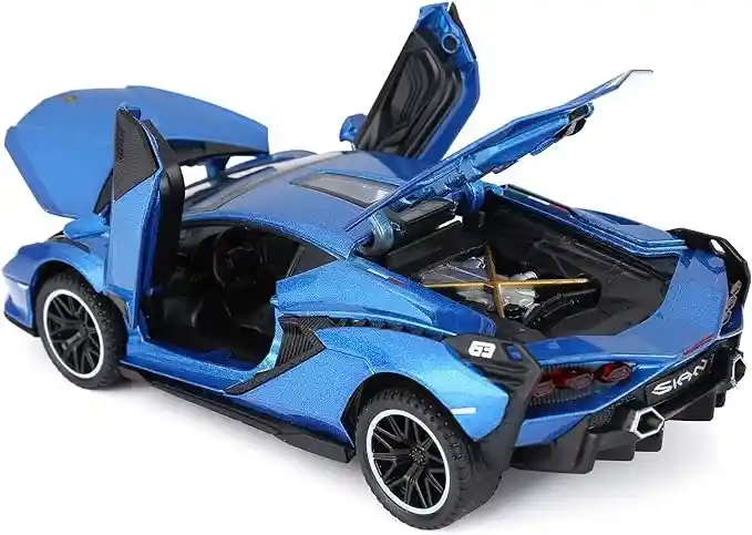 El modelo de coche es perfecto para los chicos obsesionados con el Lamborghini Sian FKP37. Puertas de apertura de coche de juguete y compartimiento del motor, el modelo de automóvil tiene partes móviles, luces y capó abiertos para ver el motor. Material: Cuerpo metálico con piezas de plástico, neumáticos de goma, molduras interiores y exteriores detalladas. Función: Tire hacia atrás del modelo de automóvil, sonido y luz del motor. Presione las dos ruedas del automóvil delantero para activar el sonido y las luces del motor, y abra la puerta para activar las luces de las luces delanteras y traseras. Coloque el automóvil en el suelo, mantenga presionada la carrocería del automóvil y tire de ella hacia atrás, el modelo de automóvil avanzará. Gran regalo y decoración: Muy resistente, mano de obra fina, bonito coche de juguete, ni grande, ni pequeño. Regalo de cumpleaños y regalos de Navidad para niños de 3 a 20 años. TAMAÑO: modelo de automóvil Lamborghini Sian a escala 1/32 con base de exhibición, tamaño del producto: 6.3 * 2.7 * 1.6 pulgadas.