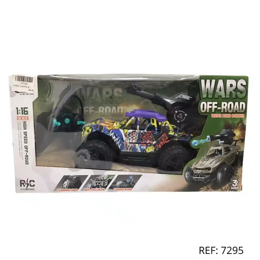 Carro todoterreno con control remoto y lanzador de agua. Diseño urbano y gran velocidad.