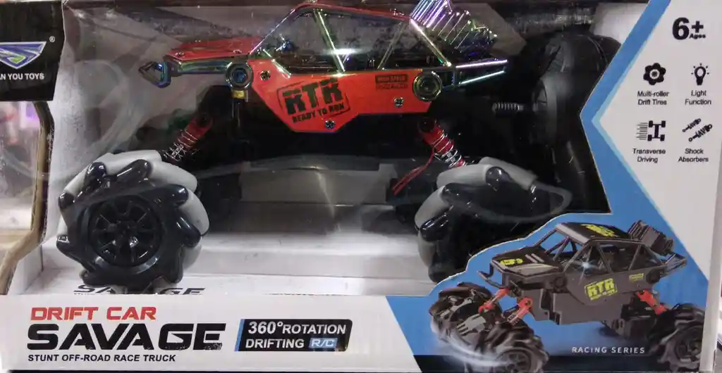 Carro control remoto, con manilla, rotación 360°,conduccion transversal, neumáticos multirodillos, luz, amortiguadores