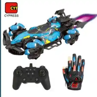 Descripción General¡Experimenta el futuro del juego RC con el Auto de Carreras de Alto Rendimiento CYPRESS! Este vehículo futurista, con un diseño agresivo en color azul eléctrico y negro, ofrece dos formas de control inmersivo: un control remoto tradicional y un innovador guante sensor de gestos (o pulsera).Ideal para entusiastas de la velocidad y la tecnología, este coche cuenta con ruedas omnidireccionales (típico de estos modelos) que permiten movimientos laterales y giros de 360°, ¡además de efectos visuales de humo y luz para una sensación de propulsión!Características PrincipalesControl Dual Innovador:Control por Gestos: Utiliza un guante sensor que detecta los movimientos de la mano y el dedo para dirigir el coche.Control Estándar: Incluye un control remoto tipo gamepad para un manejo preciso y tradicional.Diseño Súper Deportivo: Estética futurista y agresiva en colores azul, negro y detalles rojos, con jaula protectora y luces.Efectos de Propulsión: La parte trasera simula una estela de humo/luz púrpura para un efecto visual dinámico.Ruedas Especializadas: Aunque no se ven claramente, su forma y la tecnología suelen implicar ruedas que permiten drifting y movimientos laterales.Marca y Calidad: El logo CYPRESS indica la marca del producto.Especificaciones TécnicasCaracterísticaDetalleMarca / LíneaCYPRESSTipo de ProductoVehículo a Control Remoto (RC) de Alta TecnologíaMecanismos de ControlControl Estándar (Gamepad) y Control por Gestos (Guante)FuncionalidadAlta velocidad, movimientos avanzados, efectos visuales de luz/humo (típico).ColoresAzul y NegroAlimentaciónAuto y Control requieren baterías (Generalmente recargables para el auto).
