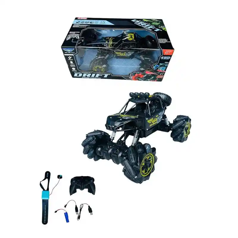 1. Material duradero y brillante: Fabricado con plástico resistente, ideal para largas horas de juego. 2. Control remoto inalámbrico: Fácil de operar, con múltiples funciones de manejo. 3. Conducción 4WD: El carro se desplaza hacia adelante, atrás, gira a la izquierda y derecha, y tiene funciones de giro de 360 grados. Además, puede moverse de lado y cuenta con una función de demostración automática. 4. Transformación todoterreno: Controla el carro desde la manilla y si enfrentas obstáculos grandes, puedes transformarlo en modo 4x4 para superar cualquier terreno. 5. Diversión sin límites: Ideal para niños a los que les encantan los autos de control remoto. Con este vehículo, disfrutarán de un diseño elegante y una experiencia de juego incomparable. 6. Baterías recargables incluidas: Tanto el carro como el control de la manilla funcionan con baterías recargables que puedes cargar fácilmente mediante un puerto USB. 7. Control direccional completo: Mueve el carro hacia adelante, atrás, derecha e izquierda fácilmente desde el mando. 8. Alcance de 25 metros: Juega a larga distancia sin perder el control. 9. Luces integradas: El vehículo cuenta con luces que se encienden mientras está en movimiento, haciéndolo aún más emocionante. 10. Colores vibrantes: Disponible en negro con amarillo o azul. 11. Control con tres baterías AA para la manilla (NO INCLUIDAS). DIMENSIONES DEL EMPAQUE: - Largo: 36 cm - Ancho: 19 cm - Alto: 17 cm INCLUYE EN TU COMPRA: 1. Carro 4x4 con Sensor de Manejo por Movimiento de Mano. 2. Control remoto inalámbrico. 3. Control de manilla con sensor. 4. Cargador USB para las baterías del carro. 5. Cargador USB para la manilla. 6. Presentación en caja de lujo. 7. Baterías recargables para el vehículo.