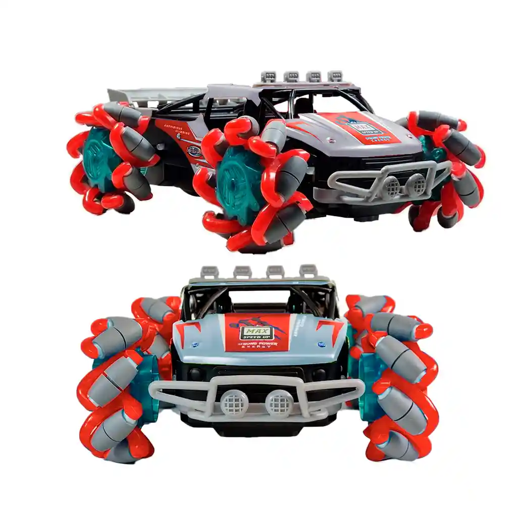 Potente camioneta a control remoto con tracción en sus 4 ruedas, lo puedes controlar de dos formas: con su manilla de sensor de gestos o con su control remoto ergonómico con tecnología 2.4GHz que emite una señal fuerte y receptiva incluso a largas distancias. Su diseño está enfocado específicamente para movimientos de alto nivel, como giros de 360°, deriva en todas las direcciones, escalada incluso en terrenos de superficies irregulares como arena, césped, asfalto gracias al diseño único de sus ruedas todoterreno. Fabricado con plástico ABS duradero y ecológico, sumado a su estructura interna lo hace inmune a golpes no inducidos por el hombre. Además cuenta con efectos musicales dinámicos e iluminación LED vibrante, que no solo lo hacen un vehículo resistente sino atractivo y único. ¡El juguete adecuado para niños y niñas que quieren divertirse en exteriores alejados de las pantallas y en busca de aventuras! El auto de acrobacias viene con una batería recargable de iones de litio de 3.7 V (incluida en el paquete). Se puede cargar completamente y proporcionar aproximadamente 30 minutos de uso continuo. Ten en cuenta que el control remoto de mano requiere dos baterías "AA" (no incluidas), y la manilla controladora sensor de gravedad requiere dos baterías "AAA" (no incluidas). ESPECIFICACIONES: - Avance, retroceso, se mueve a la izquierda y la derecha - Luces de colores, efectos musicales - Llantas adherentes al terreno - Subida con brazo oscilante - Caminar boca abajo - Giro de 360° - Caminar hacia atrás - La manilla controladora admite el control de gravedad por gestos - Distancia de control remoto y manilla controladora: Alrededor de 30 a 50 metros - Duración de batería: Alrededor de 30 a 45 minutos. - Tiempo de carga: Alrededor de 90 a 120 minutos. CARACTERÍSTICAS: 1. camioneta de acrobacias y luces LED, todoterreno a control remoto, tracción en las 4 ruedas, recargable, carro de juguete para niños, adolescentes y adultos. 2. Puede deformar su cuerpo, esto lo ayuda a esquivar obstáculos más fácilmente. 3. Se puede mover en cualquier dirección ya sea en diagonal, horizontal o vertical y de adelante a atrás, conducción y giro flexibles. Supera rápidamente todos los obstáculos. Un juguete de coche de control remoto ideal para niños y adultos. 4. Control remoto y manilla controladora de 2.4 GHz. Control remoto de larga distancia y manilla controladora de 30 a 50 metros, tecnología anti interferencia mejorada, para garantizar la diversión de explorar sin límites El paquete incluye: 1 * Carro control remoto todoterreno 1 * Control remoto 1 * Manilla controladora 1 * Batería de 3,7 V 1 * Cable de carga USB 1 * Manual de instrucciones