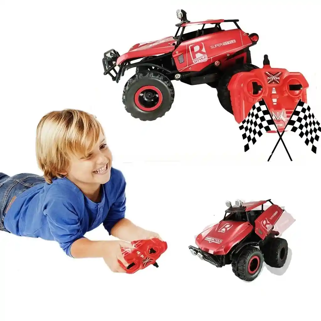 Carro Control Remoto Stunt Chase Rotación Juguete Jugueteria DJ792 Stunt Chase es el automóvil todoterreno. El automóvil está especialmente diseñado para correr en superficies rugosas, de arena, barro, hierba, etc. Tiene una característica especial como salto y rotación. Cuando se le da una aceleración completa al automóvil, levanta 90° las llantas delanteras y también gira 360 °. El automóvil tiene 2 ruedas pequeñas en la parte posterior para soporte. El tamaño de la rueda principal es grande y está hecho de goma para un mejor agarre y lograr las mejores acrobacias. -Fuerte metal + cuerpo de plástico, Grandes neumáticos de goma y fuerte aceleración, una combinación perfecta para este todo terreno. -Características especiales: elevación 90° de sus llantas delanteras, puede girar 360 ° . -Cuerpo plegable y ruedas de apoyo, se plega su parte posterior cuando salta y la rueda de soporte brinda estabilidad. -Baterías recargables para automóvil AA 700 mAh 6 V (incluidas) / 2 baterías de tamaño AA (incluidas) -Dimensiones del producto: Auto: L-25 x A-18 x Al-16 Cm / Remoto: L-11 x A-11 x Al-2 Cm. -Saltar El automóvil tiene una característica especial de saltar y rotar cuando la aceleración total se le da al automóvil, su forma de salto vertical en la parte delantera permite conducir de esa manera en un camino largo. -Girar 360 ° Cuando se acelera y se presiona el botón al mismo tiempo, el automóvil gira 360 °. Se mantiene girando durante el tiempo que se mantiene presionado el botón. -Rueda grande y rueda de apoyo Como es un automóvil todo terreno, la rueda de goma grande ayuda al automóvil a mantener el agarre en una carretera y también ayuda a no sufrir daños, y el automóvil también tiene una rueda de soporte especial que brinda estabilidad en todo terreno.