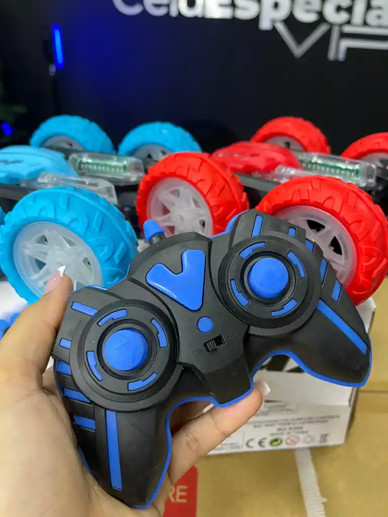 Acrobático con control remoto de cuatro ruedas y doble motor tiene características que van más allá de su imaginación. Increíble rotación de 360°, rotación de dirección izquierda y derecha, conducción en ambos lados, adelante/atrás/izquierda/derecha, música conmutable y luces LED geniales. La velocidad más rápida puede alcanzar las 9,3 mph. Modo de demostración con una sola tecla, experiencia sin precedentes. Utiliza la última tecnología de control remoto de 2,4 GHz. La distancia de control es de más de 98,4 pies, con función antiinterferencia inteligente y sensible. Varios jugadores pueden competir contigo al mismo tiempo sin interferencias de señal. El tamaño del mando a distancia es ergonómico, por lo que los niños de cualquier edad pueden controlarlo fácilmente.