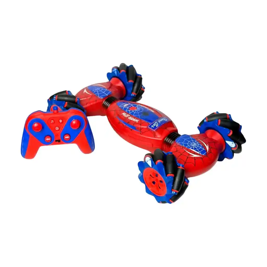 ¡Prepárate para acrobacias que desafían la gravedad con este asombroso "Stunt Car" de doble cara y temática arácnida! Este bólido de 2.4Ghz redefine el juego, ya que no solo es capaz de conducir por ambos lados, sino que sus innovadoras ruedas le permiten derrapar lateralmente y realizar giros vertiginosos de 360°. La verdadera magia está en su doble sistema de control: domínalo con el mando tradicional o ponte el control de gestos en la mano para dirigir cada movimiento con un simple giro de muñeca. Es el regalo definitivo para niños de 6 años en adelante que buscan acción, velocidad y acrobacias de otro nivel. /// El juguete incluye baterías /// Ficha Técnica: Material : Plástico ABS Funcionamiento del carro: Bateria recargable ( Incluida ) Funcionamiento del control : 2 Baterías AA ( Incluida ) Edad Apto + 3 años Dimensiones : 28 cm x 18 cm x 7 cm Certificado de conformidad: E5-0359-2021 Referencia: C4533 ** _Para defectos de fábrica o retractos: \_Por favor revise el producto apenas lo reciba y antes de usarlo. No aplican ley de retracto o defectos de fábrica luego de usar el producto. Se manejan máximo 5 días para reportar defectos de fábrica (por ejemplo, producto funciona mal, piezas faltantes, rotas, etc). Para hacer efectiva la devolución el producto debe devolverse con el empaque original, el cual debe estar en buen estado, incluir todos los documentos y las partes completas y sin daños.