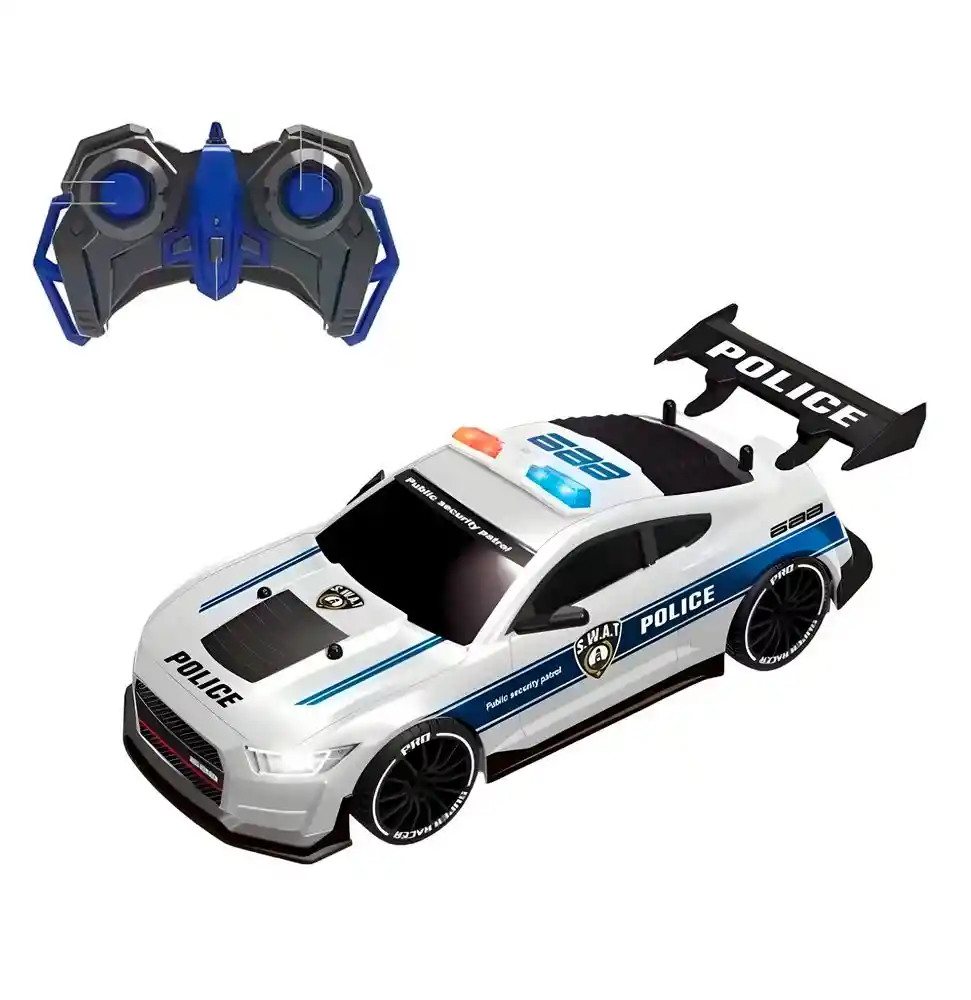 Este espectacular carro de policía a control remoto llevará la emoción de las persecuciones directamente al juego, con un diseño deportivo en blanco y negro, luces en la parte superior y detalles que lo hacen lucir como un verdadero vehículo de patrulla, mientras su control ergonómico permite acelerar, girar y maniobrar con gran facilidad, ofreciendo aventuras llenas de velocidad, imaginación y acción para pequeños amantes de los autos y los héroes que mantienen la ciudad a salvo. Ficha Técnica: Dimensiones del carro : 25 cm x 12 cm x 9 cm Alimentación del carro : Bateria recargable ( Incluida ) Alimentación del control : 2 Baterías AA ( Incluidas ) Edad Apta : + 3 años Referencia: JM-1001 YF668-P42A Certificado de conformidad: E5-0359-2021 Términos de Garantía: Para defectos de fábrica o retractos: Por favor revise el producto apenas lo reciba y antes de usarlo. No aplican ley de retracto o defectos de fábrica luego de usar el producto. Se manejan máximo 5 días para reportar defectos de fábrica (por ejemplo, producto funciona mal, piezas faltantes, rotas, etc). Para hacer efectiva la devolución el producto debe devolverse con el empaque original, el cual debe estar en buen estado, incluir todos los documentos y las partes completas y sin daños.