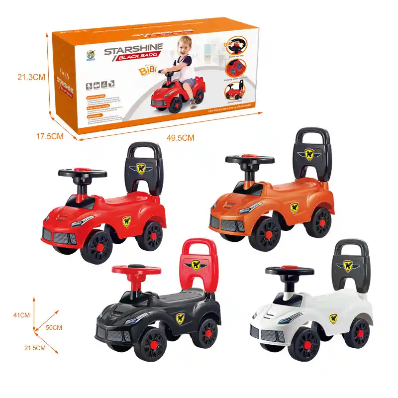 Carro infantil montable para niños Material seguro y duradero,el Regalo perfecto para niños. Este vehículo para niños, El correpasillos imita la forma de un carro ferrari Tiene cuatro ruedas, las dos delanteras son giratorias para que tu pequeño(a) elija la dirección que va a tomar. En el volante color Naranja hay un gran botón rojo que al presionarlo suena como un claxon, tiene adhesivos que decoran el montable de juguete para que se vea mucho más realista Montar en un montable puede proporcionar una experiencia sensorial enriquecedora para los niños. Pueden experimentar diferentes texturas, sonidos y movimientos mientras juegan, lo que estimula sus sentidos y promueve el desarrollo sensorial.
