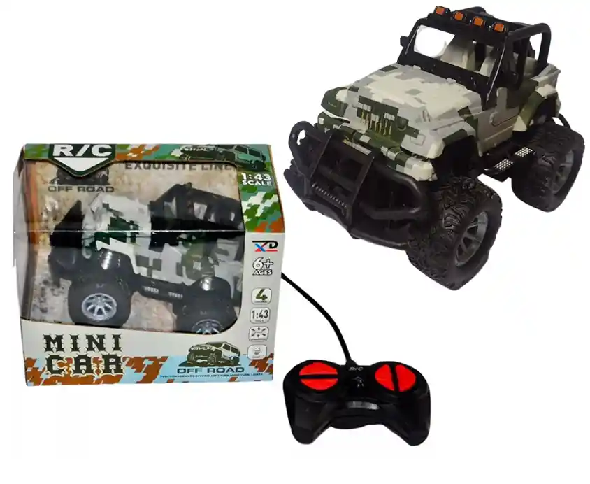 Somos Inversiones MAZUGI CAMIONETA JEEP MILITAR SIN TECHO Hecho de plástico La camioneta y el control funcionan con 2 pilas AA cada uno (No vienen incluidos) Modelo militar Camioneta Car 4x4 Camioneta Car 4x4 Control Remoto Camioneta 4x4 control remoto con medidas 15x11x10 cm disponible en dos colores: naranja. El control llega a un alcance máximo de 10 metros, lo que le permite brindar la mejor experiencia posible. Medidas Alto: 8,7cm Largo: 14cm Ancho: 8,6cm Presentación en caja