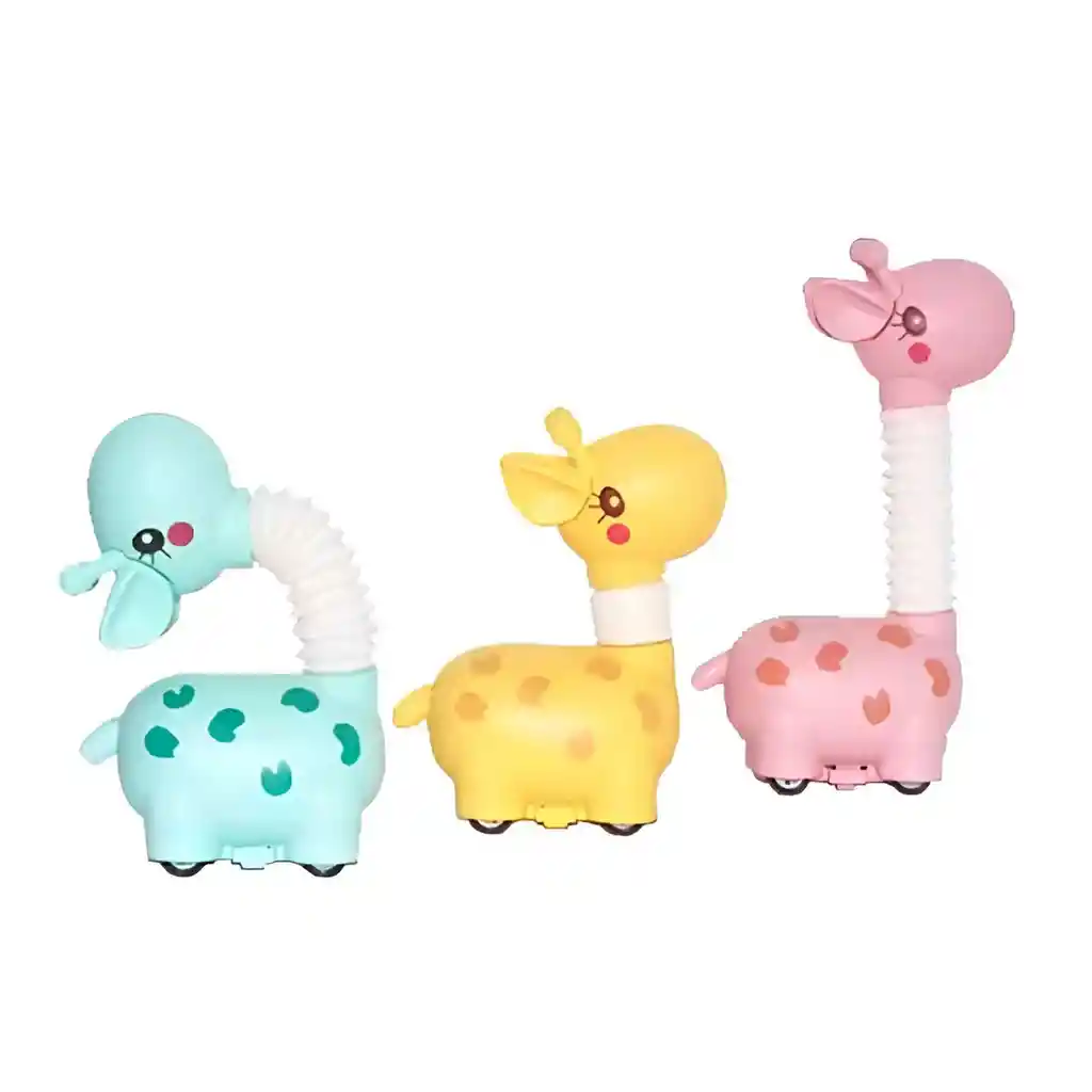 ¡Prepárate para estirar la diversión y correr a toda velocidad con nuestras adorables Jirafas de Cuello Extensible! Este juguete 2 en 1 combina la emoción de un carrito de fricción con la satisfacción de un juguete sensorial. Simplemente jala la jirafa hacia atrás sobre sus ruedas y suéltala para verla avanzar en una divertida carrera, ideal para animar a tu pequeño a gatear y moverse. Además, su cuello flexible con textura de tubo corrugado se estira y se contrae, produciendo un sonido y una sensación agradables que estimulan los sentidos y ayudan a desarrollar la motricidad fina. Con su diseño tierno, colores pastel y sin necesidad de baterías, esta jirafa es el compañero perfecto para horas de juego imaginativo, carreras emocionantes y exploración táctil. / El precio corresponde a tres carros asi como se aprecia en la foto / Ficha Técnica: Dimensiones: 13 cm x 11 cm X 6 cm Material : Plástico ABS Edad recomendada: + 3 años Certificado de conformidad: E5-0359-2021 Referencia: LSH688-6 ** _Para defectos de fábrica o retractos: \_Por favor revise el producto apenas lo reciba y antes de usarlo. No aplican ley de retracto o defectos de fábrica luego de usar el producto. Se manejan máximo 5 días para reportar defectos de fábrica (por ejemplo, producto funciona mal, piezas faltantes, rotas, etc). Para hacer efectiva la devolución el producto debe devolverse con el empaque original, el cual debe estar en buen estado, incluir todos los documentos y las partes completas y sin daños.