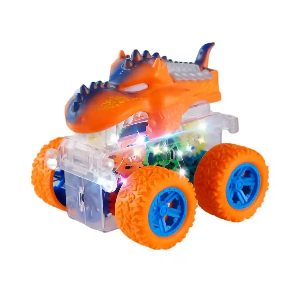 ¡Prepárate para una aventura prehistórica a toda velocidad con nuestro increíble Carro Monstruo Dinosaurio con Engranajes! Este vehículo combina la ferocidad de un dinosaurio con la potencia de un monster truck en un diseño espectacularmente único. Su fascinante cuerpo transparente permite ver un hipnótico espectáculo de engranajes multicolores que giran y se iluminan con vibrantes luces LED mientras el carro se mueve. Diseñado para la acción, este juguete avanza por sí solo con un sistema que le permite cambiar de dirección al encontrar obstáculos, garantizando que la diversión nunca se detenga. Es el regalo perfecto para despertar la curiosidad y la imaginación, ofreciendo una experiencia sensorial completa con movimiento /// El precio corresponde a un solo carro /// Ficha Técnica: Dimensiones: 9 cm x 9 cm X 9 cm Material : Plástico ABS Edad recomendada: + 3 años Certificado de conformidad: E5-0359-2021 Referencia: D401-30 ** _Para defectos de fábrica o retractos: \_Por favor revise el producto apenas lo reciba y antes de usarlo. No aplican ley de retracto o defectos de fábrica luego de usar el producto. Se manejan máximo 5 días para reportar defectos de fábrica (por ejemplo, producto funciona mal, piezas faltantes, rotas, etc). Para hacer efectiva la devolución el producto debe devolverse con el empaque original, el cual debe estar en buen estado, incluir todos los documentos y las partes completas y sin daños.