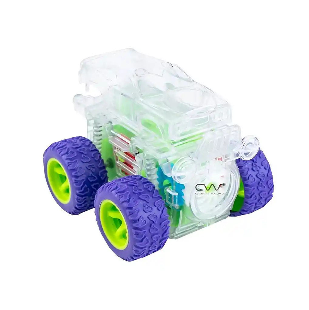 ¡Prepárate para la acción y las acrobacias más alucinantes con este espectacular Carro Monster que desafía la gravedad! Gracias a su potente motor de fricción, solo necesitas arrastrarlo para que acelere a toda velocidad, pero la verdadera magia comienza cuando lo colocas en posición vertical: ¡observa cómo realiza un increíble giro de 360 grados sobre su eje que dejará a todos asombrados! Para un espectáculo aún más impactante, su fascinante diseño transparente deja ver los engranajes internos en movimiento mientras se encienden sus vibrantes luces LED. Con sus ruedas de goma de gran tamaño listas para cualquier superficie, este vehículo es el regalo perfecto para los amantes de la velocidad y las piruetas, garantizando horas de juego dinámico y entretenimiento lleno de adrenalina. /// Nota: El precio corresponde a un solo carro /// Ficha Técnica: Dimensiones : 10 cm x 8 cm x 9 cm Material: Plastico ABS Edad Apta : + 3 Años Referencia: JH1223 Certificado de conformidad: E5-0359-2021 ** _Para defectos de fábrica o retractos: \_Por favor revise el producto apenas lo reciba y antes de usarlo. No aplican ley de retracto o defectos de fábrica luego de usar el producto. Se manejan máximo 5 días para reportar defectos de fábrica (por ejemplo, producto funciona mal, piezas faltantes, rotas, etc). Para hacer efectiva la devolución el producto debe devolverse con el empaque original, el cual debe estar en buen estado, incluir todos los documentos y las partes completas y sin daños.