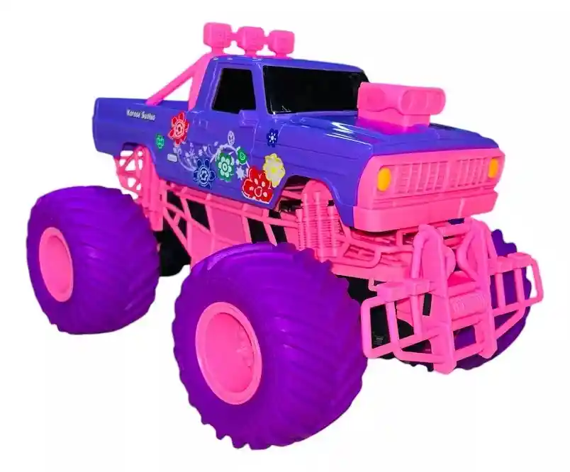 Carro MonsterTruck con Control Remoto para Niña Características: - Material plástico resistente y brillantes. - Opera con control remoto inalámbrico. - El carro cuenta con batería recargable. - Dirección a la derecha, izquierda, adelante y atrás. - Alcance de 12 metros aproximadamente. - Color rosado con morado. - El control opera con 2 pilas AA (No incluidas). - Medidas del producto: *Carro: 15 cm Alto x 23 cm Largo x 17 cm Ancho *Caja: 19 cm Alto x 19 cm Largo x 28 cm Ancho - Contenido de la compra: Carro Monstertruck rosado, control remoto inalámbrico, batería recargable y cargador de baterías.