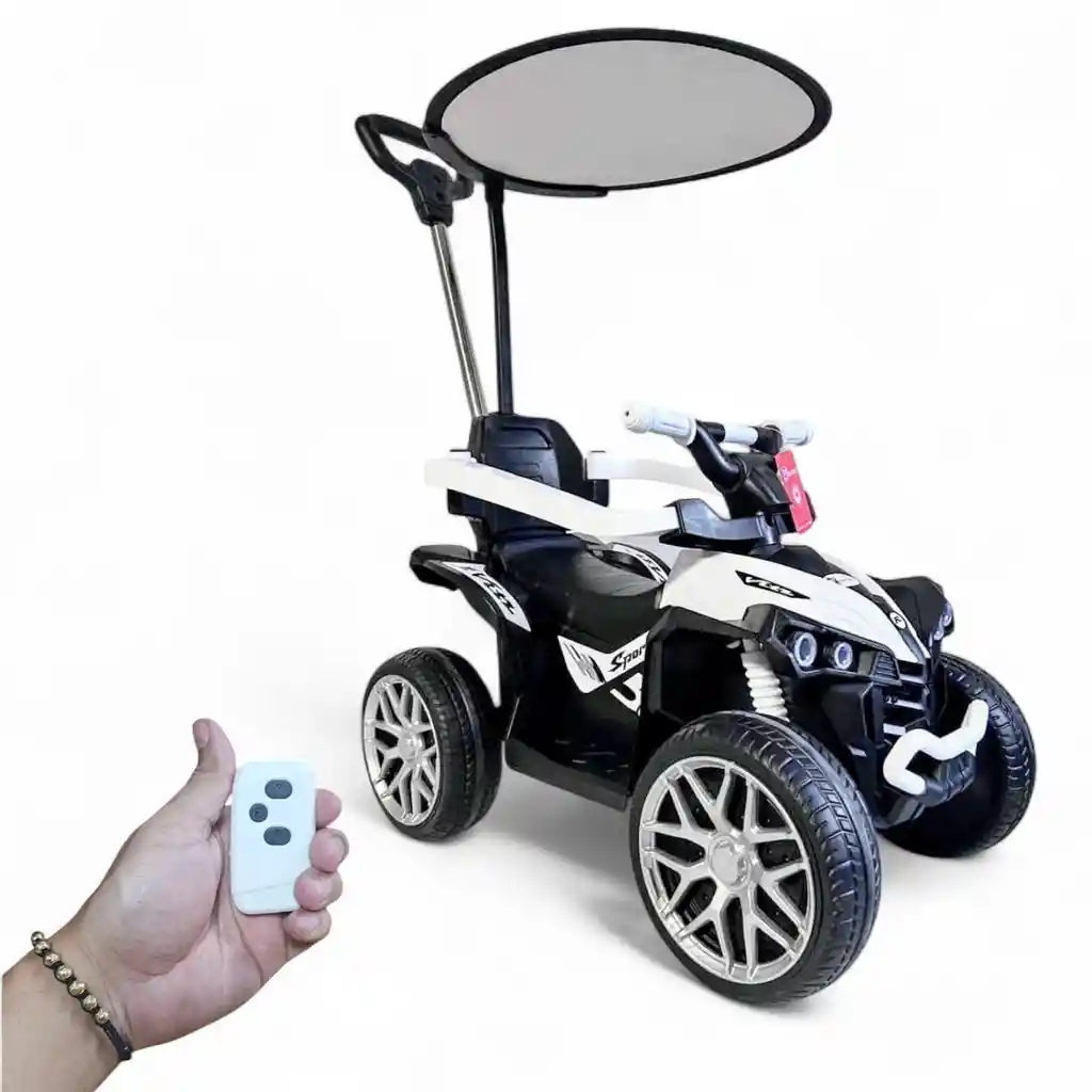 Carro Montable tipo Campero 3 en 1 ( Auto a batería, Carro de Empuje y Correpasillos) Pedal de aceleración para ser manejado por el niño (a), Barra de empuje con control de dirección,sistema de embrague para liberar motores cuando es empujado desde barra de empuje, Control remoto Inalámbrico 2.4 GH, BLUETOOTH para conectar música desde tu celular, Música incluida, Entrada USB y auxiliar, Barras de seguridad, Luces delanteras led, Aceleración gradual , 3 velocidades regulables desde el control remoto. Ayuda a tu bebé a desarrollar las habilidades motoras de sus PIERNAS, la coordinación, fuerza y de manera muy divertida. BAÚL debajo del asiento (cajón) para guardar los juguetes o llevar EL REFRIGERIO. Brinda diversión al momento de usarlo. El producto está hecho con materiales de alta calidad y por ende durabilidad. Es adecuado para esta etapa de exploración No pierdas esta gran oportunidad de tenerlo en tu casa. Ahora Alto del Piso a la Guía de empuje : 90 cm Dimensiones del producto : 72*40*42cm Fácil de limpiar Fácil de armar Resistentes al sol y la humedad Producto Liviano Su estilo es único y fácil de transportar Desarrollan las habilidades motrices Dirección giratoria Agarradera de empuje Ayuda al desarrollo de las habilidades motrices Fácil de transportar y llevar a todas partes Ideal para espacios cerrados y exteriores