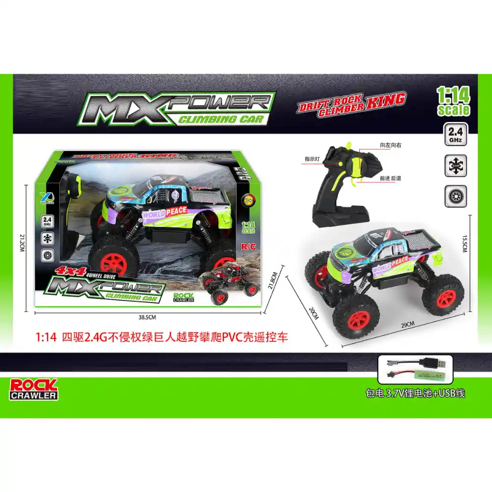 NOMBRE: CARRO MX POWER CLIMBING R/C BATERIA RECARGABLE CAJA DESCRIPCION: Increíble Carro Radiocontrol ideal para que los niños recreen fantásticas historias de carreras llenas de adrenalina y emoción, manejando como todo un profesional y luciendo un estilo moderno, único y divertido. Carro con movimiento Full function (multidireccional): desplazamiento hacia adelante, hacia atrás y giro a derecha e izquierda. Los juguetes radiocontrol ayudan a los niños a fortalecer el desarrollo en la coordinación manos y ojos, orientación de las direcciones (ir a la derecha, izquierda, ir recto o hacia atrás) y al desarrollo de habilidades psicomotrices y de imaginación. Incluye batería recargable para el vehículo, no para el control remoto. Requiere 1 pila 3,6 V no incluidas. - Dimensiones del producto empacado: 29X20X15,5 centímetros - Disponibilidad permanente - Despachos a nivel nacional - Tiempo de entrega aproximado 3 a 4 días hábiles contados a partir del día hábil siguiente al pedido. La plataforma te dará un tiempo de entrega mas preciso al momento de concretar la compra. Estamos atentos a resolver cualquier inquietud que tengas después de revisar las fotos y descripción del producto. JUGUETELANDIA más de 30 años ofreciendo diversión. Fabricante: HENG DA TOYS FACTORY Importador: Plasticos Asociados SA Recomendaciones: Requiere de la supervisión directa de un adulto, puede contener partes pequeñas, riesgo de asfixia o ahogamiento, no destinar este juguete para menores por debajo de la edad establecida en la etiqueta. Edad mínima sugerida: 3 años Lote: Dato variable. Se puede verificar en el sticker que trae el producto físico. Fecha de fabricación: Dato variable. Se puede verificar en el sticker que trae el producto físico.