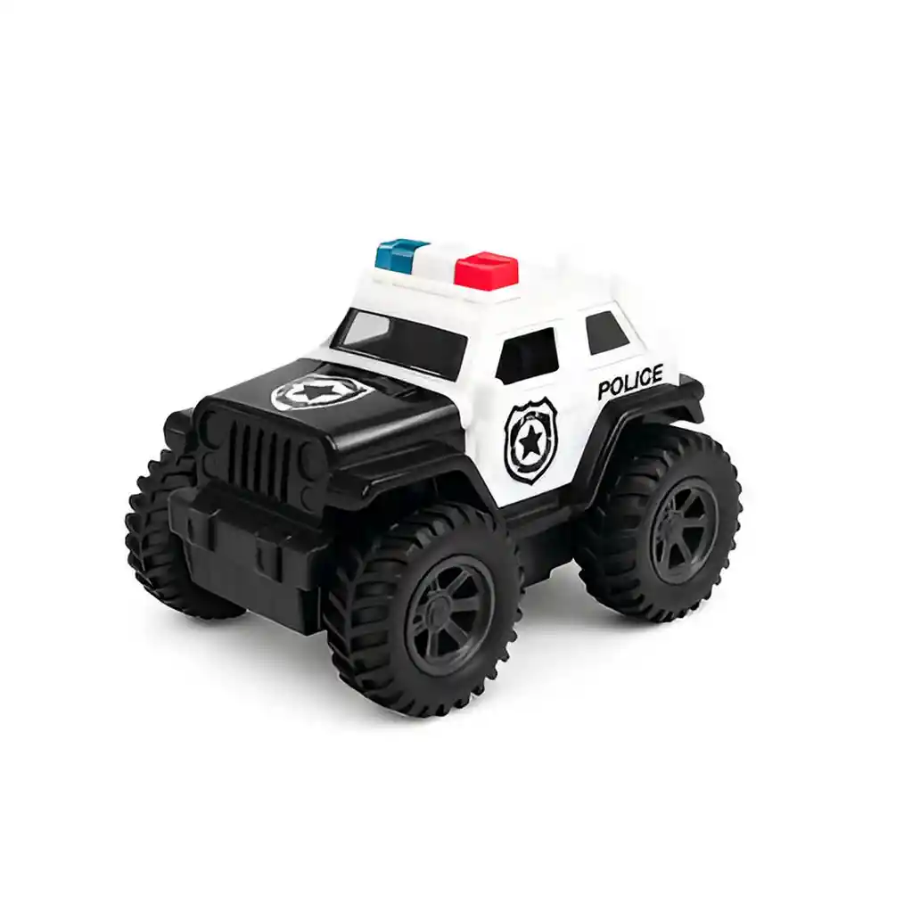 ¡Prepárate para la acción y las acrobacias más extremas con nuestro increíble Carro de Policía Todoterreno! Este robusto vehículo está diseñado para la aventura sin límites, capaz de chocar contra los obstáculos, voltearse de forma espectacular y seguir su camino como si nada gracias a su asombroso sistema de volteretas. Sus imponentes llantas de alto agarre le permiten conquistar cualquier superficie, convirtiéndolo en la máquina perfecta para las persecuciones más emocionantes que tu pequeño héroe pueda imaginar. Ideal para fomentar el juego activo y la creatividad, este carro de policía es el regalo perfecto para garantizar horas de diversión imparable y adrenalina. ¡Ninguna misión será imposible! /// El juguete incluye baterías /// Ficha Técnica: Dimensiones: 10 cm x 8 cm x 7 cm Funcionamiento: 2 Baterías AA Material: Plástico ABS Edad Recomendada: + 3 años Referencia: V-155 Certificado de conformidad: E5-0359-2021 ** _Para defectos de fábrica o retractos: \_Por favor revise el producto apenas lo reciba y antes de usarlo. No aplican ley de retracto o defectos de fábrica luego de usar el producto. Se manejan máximo 5 días para reportar defectos de fábrica (por ejemplo, producto funciona mal, piezas faltantes, rotas, etc). Para hacer efectiva la devolución el producto debe devolverse con el empaque original, el cual debe estar en buen estado, incluir todos los documentos y las partes completas y sin daños.