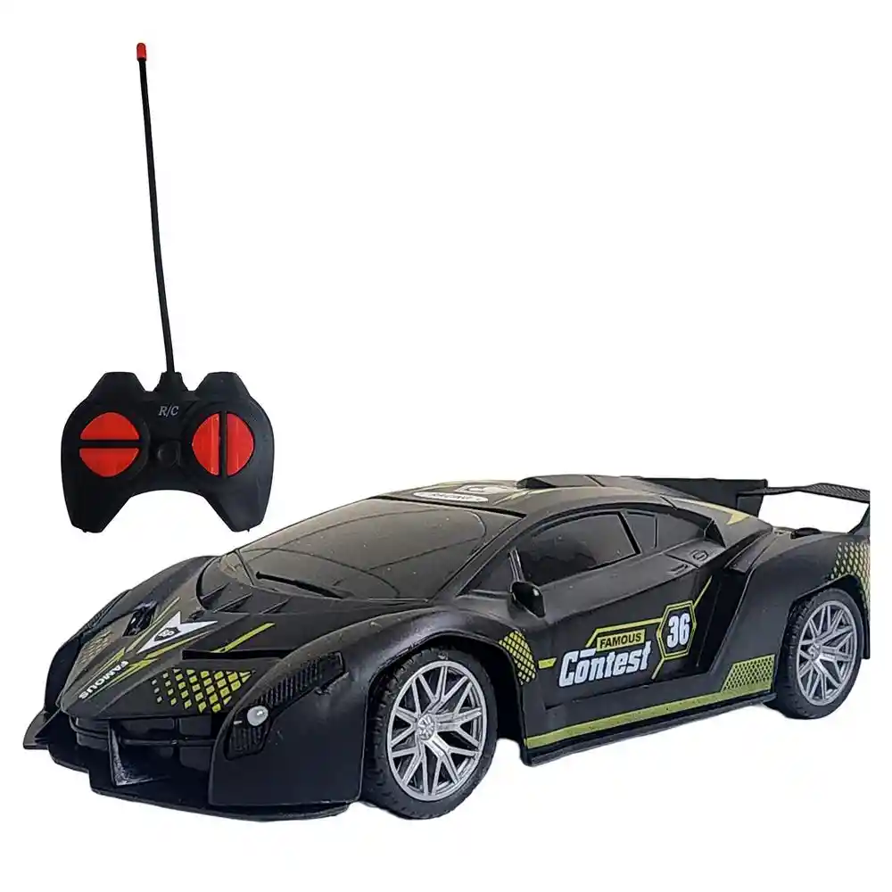 Auto deportivo a control remoto con diseño aerodinámico y acabado metálico brillante que resalta su estilo moderno y potente. Equipado con un control ergonómico de doble palanca, permite dirigirlo con precisión en todas las direcciones. Su estructura ligera y resistente, junto con sus llantas de alto rendimiento, lo hacen ideal para carreras en interiores o exteriores. Perfecto para niños y coleccionistas que disfrutan de la velocidad, la tecnología y los autos de lujo en miniatura. // El producto incluye batería // Ficha Técnica: Materiales : Plástico ABS Dimensiones: 18 cm x 9 cm x 4 cm Funcionamiento del carro: Batería recargable ( Incluida ) Funcionamiento del control : 2 Baterías AA ( Incluidas ) Edad recomendada : + 3 años en adelante Certificado de conformidad: SL-CS-210044 Referencia: 1009 138/156 Términos de garantía: Para defectos de fábrica o retractos: Por favor revise el producto apenas lo reciba y antes de usarlo. No aplican ley de retracto o defectos de fábrica luego de usar el producto. Se manejan máximo 5 días para reportar defectos de fábrica (por ejemplo, producto funciona mal, piezas faltantes, rotas, etc). Para hacer efectiva la devolución el producto debe devolverse con el empaque original, el cual debe estar en buen estado, incluir todos los documentos y las partes completas y sin daños.