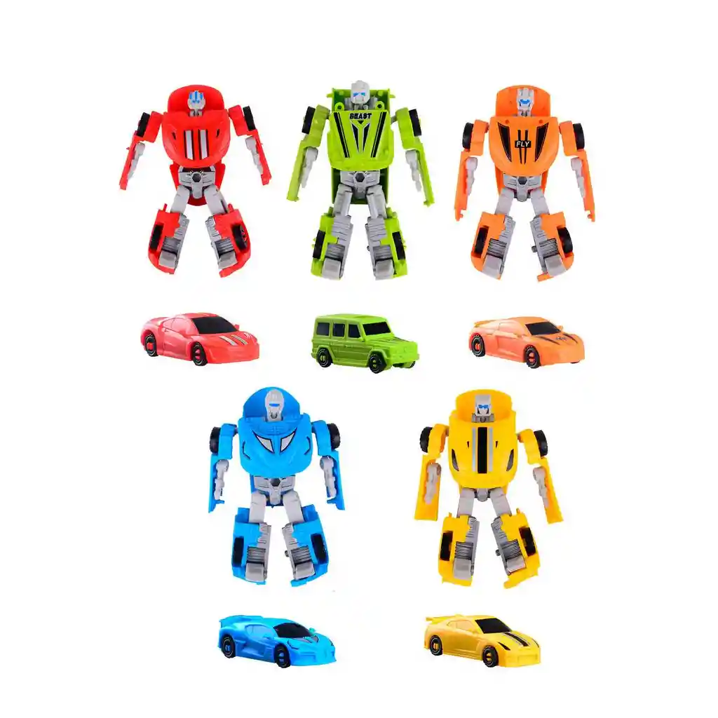 ¡Prepárate para el doble de acción y aventura con la increíble colección de robots transformables Mecha Warrior! Cada figura es un poderoso guerrero listo para la batalla, pero con unos simples movimientos manuales, ¡se convierte en un vehículo de alta velocidad listo para dominar el asfalto! Disponibles en cinco vibrantes modelos coleccionables, desde veloces autos deportivos hasta robustos todoterrenos, estos héroes 2 en 1 son perfectos para desarrollar el ingenio y la motricidad fina de los pequeños. Ideal para recrear épicas batallas o emocionantes carreras, es el regalo perfecto para los amantes de los robots y los autos. ¡Elige a tu guerrero o júntalos a todos para formar el escuadrón definitivo! /// El precio corresponde a 5 carros /// Ficha Técnica: Dimensiones del empaque: 8 cm x 6 cm x 2 cm Material: Plástico ABS Edad recomendada: + 3 años Certificado de conformidad: E5-0359-2021 Referencia: C4400 ** _Para defectos de fábrica o retractos: \_Por favor revise el producto apenas lo reciba y antes de usarlo. No aplican ley de retracto o defectos de fábrica luego de usar el producto. Se manejan máximo 5 días para reportar defectos de fábrica (por ejemplo, producto funciona mal, piezas faltantes, rotas, etc). Para hacer efectiva la devolución el producto debe devolverse con el empaque original, el cual debe estar en buen estado, incluir todos los documentos y las partes completas y sin daños.