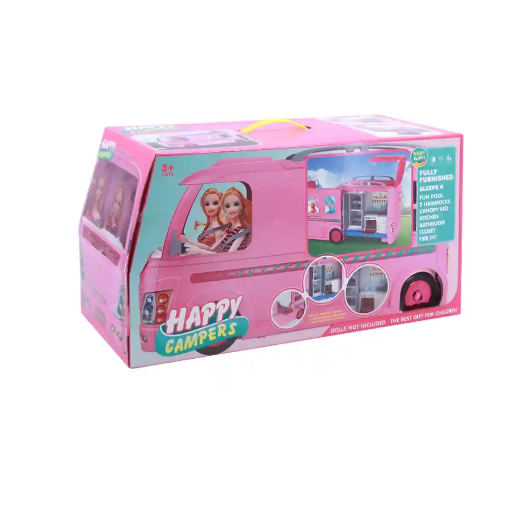 ¡Embárcate en la aventura de tus sueños con nuestro increíble Camper de Lujo! Este impresionante vehículo rosa no es solo una casa rodante, es un mundo de diversión sobre ruedas que se transforma mágicamente al abrirse, revelando un interior completamente amueblado y lleno de sorpresas. Imagina viajar a destinos exóticos y, al llegar, desplegar tu hogar con una cocina equipada, un baño completo, un cómodo comedor y hasta una acogedora cama. Pero la verdadera fiesta comienza afuera, ¡con una espectacular piscina que incluye su propio tobogán para los chapuzones más divertidos! (Muñecas no incluidas). Es el escenario perfecto para infinitas historias, viajes imaginarios y momentos inolvidables, convirtiéndolo en el regalo ideal para inspirar grandes aventuras y horas de juego sin fin. Ficha Técnica: Material : Plástico ABS Edad Apta + 3 años Dimensiones del carro : 60 cm x 32 cm x 22 cm Referencia: 9013A Certificado de conformidad: E5-0359-2021 ** _Para defectos de fábrica o retractos: \_Por favor revise el producto apenas lo reciba y antes de usarlo. No aplican ley de retracto o defectos de fábrica luego de usar el producto. Se manejan máximo 5 días para reportar defectos de fábrica (por ejemplo, producto funciona mal, piezas faltantes, rotas, etc). Para hacer efectiva la devolución el producto debe devolverse con el empaque original, el cual debe estar en buen estado, incluir todos los documentos y las partes completas y sin daños.