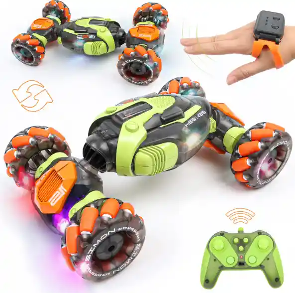 COMPRA SEGURO, EMPRESA CON SERIEDAD Y COMPROMISO Somos importadores y distribuidores, pregunta precios al por mayor de nuestros productos. Bien hecho, fácil de usar: y tiene muchas características interesantes y luces y música que hacen que sea muy divertido jugar. Ya sea que seas un niño o un adulto, este juguete seguramente te proporcionará horas de entretenimiento y emoción. Para apartar su mente de las tensiones de la vida o las presiones de estudio. Detección de gestos de coche de acrobacias de deriva RC de alta velocidad: Conduzca recta/atrás, camine de lado, rotación de 360°, transforma. Este coche de acrobacias a control remoto puede desviarse en todas las direcciones. divertido para jugar en interiores y exteriores. Alta tecnología 4WD para todos los terrenos: la junta biónico está diseñada para conquistar grava, césped, playa, escaleras y alfombras. Permite que el auto de acrobacias se transforme del modo en carretera a fuera de carretera en cuestión de segundos, incluso sube algunas pistas y no se desmoronará al golpear el suelo. Baterías adicionales para una diversión prolongada: 2 baterías recargables garantizan horas de disfrute. Aléjate de las pantallas y participa con juguetes de auto RC que se iluminan, parpadean, reproducen música y realizan varios trucos. Carro Stunt 4x4 Con Control Remoto De Sensor De Mano Oscuro 1. Material plástico resistente y brillante. 2. Opera con control remoto inalámbrico con sensor de movimiento de la mano. 3 Función: conducción 4WD, avance, retroceso, giro a la izquierda, giro a la derecha, caminar de lado, lado derecho, giro de 360 grados, función de demostración automática. 4Juguete eléctrico deformable: simplemente presione el botón en el medio del controlador, el automóvil cambia a otra forma, elija la forma para cumplir con las diversas condiciones del terreno. 5Un regalo ideal para niños y niños a los que les gustan los juguetes de control remoto. Permítales tener un auto elegante y disfrutar de su tiempo de juego. 6. El carro cuenta con baterías recargables incluidas 7. Desde la manilla puede controlar el carro y lo si hay obstáculos mas grandes lo puedes transformar en un 4x4 para que pueda pasar ese obstáculo. 8. Tiene dirección para adelante, derecha, izquierda y para atrás desde el mando 9. 25 Metros de alcance 10. Cuenta con luces 11. El control opera con tes baterías AA (INCLUIDAS) CAJA EMPAQUE: LARGO 34 cm ANCHO 10 cm ALTO 24 cm CARRO 4X4 : LARGO 25 cm ANCHO 14 cm ALTO 6 cm Azul Verde Claro Verde Oscuro 1. Carro Stunt 4x4 en color AZUL, VERDE CLARO O VERDE OSCUR. 2. Control remoto inalámbrico sensor en mano o Reloj- 3. Baterías recargables del carro 4. Cargador baterías del vehículo de USB 5.Presentación en caja de lujo
