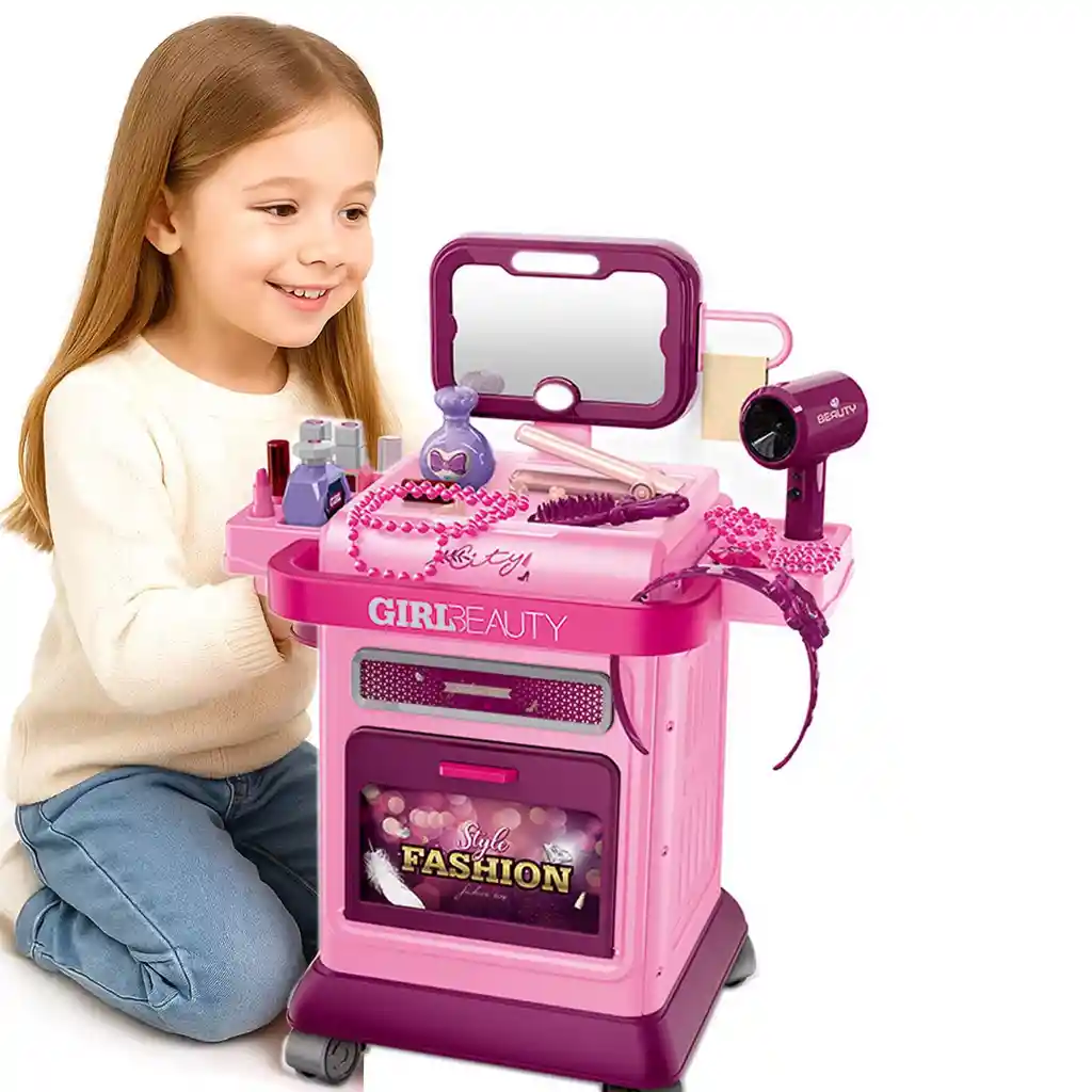 Juguete interactivo diseñado para fomentar la imaginación y el juego de roles. Este carro de belleza permite a las niñas disfrutar de una experiencia divertida mientras desarrollan habilidades de coordinación y creatividad. Contenido del producto: 1 carro tocador de belleza Accesorios de maquillaje y peinado de juguete Características del producto: Diseño tipo carro con ruedas y manija para fácil transporte. Incluye espejo, secador, peines, perfumes y otros accesorios. Funciones musicales y luces que hacen el juego más realista. Material resistente, seguro y libre de bordes filosos. Colores vivos y diseño encantador ideal para niñas. Beneficios de uso: Fomenta la creatividad y el juego simbólico. Desarrolla habilidades de organización y motricidad fina. Promueve la imaginación y el aprendizaje a través del juego. Especificaciones básicas: Tipo: Juguete didáctico de belleza Modelo: Carro tocador infantil Funciones: Luces, sonidos y accesorios de juego Material: Plástico ABS no tóxico Edad recomendada: Desde 3 años