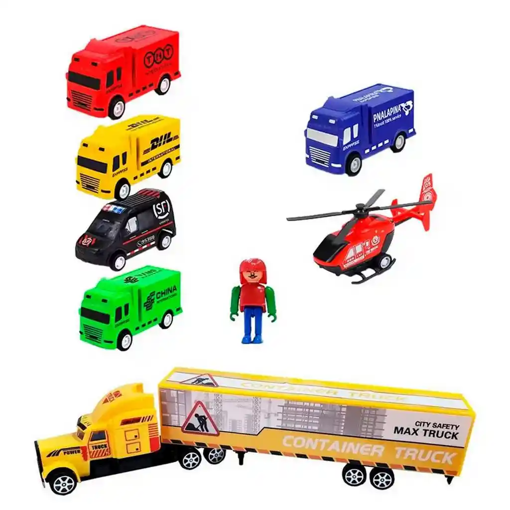 Esta emocionante colección de vehículos de transportes de impulso Perfecto para entretener a los niños con diversión y emoción Ficha Técnica: Dimensiones del carros : 7 cm x 4 cm x 3 cm Material: Plástico ABS no toxico Edad recomendada + 3 Años Referencia: 399-354D Certificado de conformidad: CS-LCO-13233-2021S2/432 ** _Para defectos de fábrica o retractos: \_Por favor revise el producto apenas lo reciba y antes de usarlo. No aplican ley de retracto o defectos de fábrica luego de usar el producto. Se manejan máximo 5 días para reportar defectos de fábrica (por ejemplo, producto funciona mal, piezas faltantes, rotas, etc). Para hacer efectiva la devolución el producto debe devolverse con el empaque original, el cual debe estar en buen estado, incluir todos los documentos y las partes completas y sin daños.
