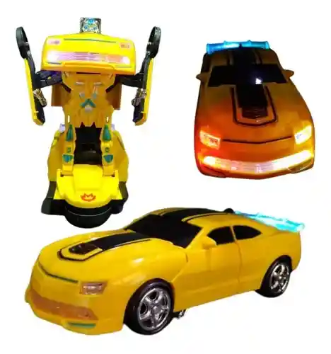 Carro transformable Carro camaro y robot Color amarillo Tiene luces y sonidos Cuenta con medidas de 22 x 9 x 8 centimetros