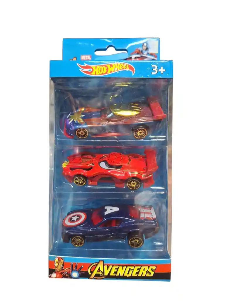 Caja de 3 carros con motivo de los avengers