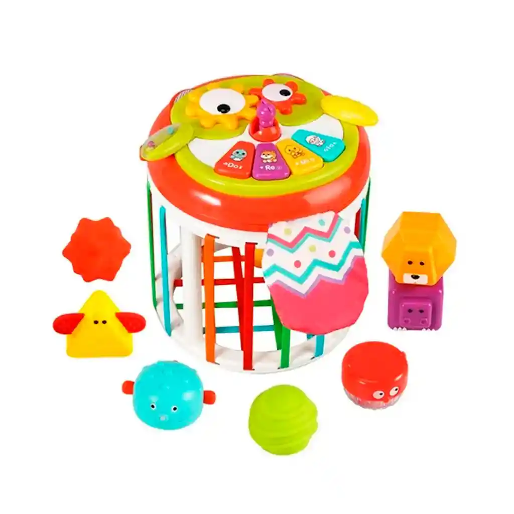 Descubre la diversión y el aprendizaje con nuestro colorido Carrusel didáctico clasificador de formas. Este juguete de reconocimiento para bebés está diseñado con figuras vibrantes y texturas variadas, ideal para estimular los sentidos de tu pequeño. Fabricado en PP de alta calidad, no solo es seguro, sino también duradero. Las teclas de piano interactivas añaden un toque musical, haciendo que cada sesión de juego sea emocionante y educativa. ¡Perfecto para desarrollar habilidades motoras y cognitivas mientras se divierten! Características: Este Carrusel didáctico clasificador de formas de bebé contiene 7 figuras y una caja sensorial con bandas elásticas de colores. Los bebés pueden utilizar este juguete para aprender a clasificar formas y reconocer colores, así como a sacar y cambiar juguetes mientras juegan, desarrollando la concentración, la motricidad fina y la destreza sensorial del niño. El Carrusel didáctico clasificador de formas está hecho de PP de alta calidad, con esquinas redondeadas suaves, bordes lisos, forma gruesa y redondeada, textura clara, con cuerda elástica de alta calidad, cómoda y agradable para la piel, no es fácil de deformar ni dañar Cada bloque del Carrusel didáctico clasificador de formas está diseñado con diferentes formas y colores , lo que puede ejercitar la capacidad de reconocimiento de colores y la capacidad de reconocimiento de formas de objetos de su bebé. Los bebés y niños pequeños pueden practicar áreas importantes del desarrollo que incluyen, entre otras, habilidades motoras, coordinación, reconocimiento de colores y formas, razonamiento causal y resolución de problemas.