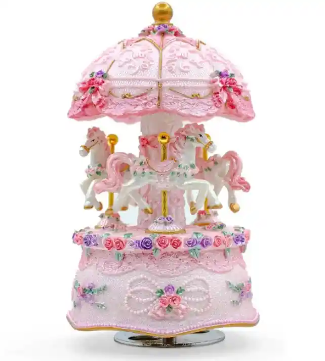 🎠 Caja de Música de Carrusel con Luz LED – “Eres mi Sol” (Color Rosa) 🌸 Una pieza mágica y encantadora que combina música, movimiento y luz. ✨ Detalles que enamoran: Hermoso carrusel giratorio con 3 caballitos, decorado con delicados detalles en tonos pastel. Luz LED que cambia de color, creando un ambiente cálido y relajante. Melodía suave y romántica: “You Are My Sunshine” (Eres mi sol). Fabricada con materiales de alta calidad y terminaciones brillantes. Incluye caja de regalo elegante, lista para obsequiar. 🎁 Ideal para niñas, coleccionistas o como regalo de cumpleaños, San Valentín o Navidad. Una joya decorativa que ilumina y alegra cualquier rincón 💖