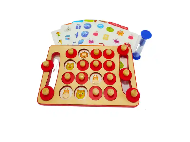 1 a 3 jugadores 1 base en madera, 6 tarjetas por ambos lados (12 niveles) y 1 reloj de arena Excelente para disfrutar en familia.