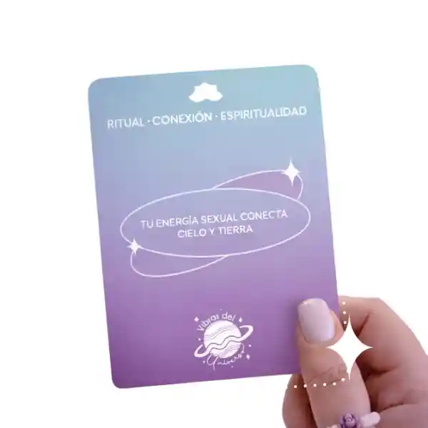 Cartas despertar de la Energía Sexual Nuestras cartas son una herramienta de conexión profunda. Cada mensaje está diseñado para acompañarte en procesos de autoconocimiento, desbloqueo del chakra sexual y liberación emocional, recordándote que tu sensualidad es una fuente de poder, creatividad y bienestar. Creemos en un placer consciente, en la valentía de escucharte y en la magia de permitirte sentir sin miedo. Vibras del Universo no busca forzarte a nada, sino invitarte a recordar quién eres cuando te eliges. Este es un espacio seguro, íntimo y amoroso, donde el cuerpo no se juzga, se honra; donde la energía no se reprime, se mueve; y donde el placer deja de ser culpa para convertirse en energía. ¿Cuál es la intención? Este mazo está creado como una experiencia de conexión profunda y enfoque personal. Cada elemento ha sido pensado para acompañarte desde el primer contacto, ayudándote a centrarte, escucharte y reconectar con la energía y el poder que ya habitan en ti. Las cartas contienen mensajes amorosos y conscientes que actúan como recordatorios diarios: te invitan a habitar tu cuerpo, a soltar la culpa, a despertar tu energía vital y a fortalecer el vínculo contigo misma. Puedes usarlas como ritual, guía emocional o intención diaria, convirtiendo cada lectura en un momento íntimo de presencia y autocuidado. Vibras del Universo no solo se lee, se siente. Es una herramienta para volver a ti, una y otra vez, desde el placer, la calma y la conexión. ¿Qué incluye? 60 cartas diseñadas como una experiencia de conexión personal 1 carta de bienvenida y presentación, que te introduce a la intención del mazo y te invita a abrir este espacio de conexión contigo. 1 carta con la oración diaria, creada para activar tu energía, centrarte y preparar tu cuerpo y tu intención antes de cada lectura y una guía, donde descubrirás cómo está dividido el mazo y cómo usarlo de manera consciente según tu momento. 58 cartas con mensajes afirmativos, que refuerzan, despiertan y recuerdan el poder de la energía que ya habita en ti. 2. Un soporte de madera para parar las cartas 3. Caja con imán para llevarlas siempre contigo. Conecta. Siente. Vibra El universo ya habita en ti. Confidencialidad: Tus pedidos se envían en una caja o sobre totalmente sellado y opaco sin ningún tipo de marcas. Para nosotros es muy importante tu privacidad. Despacho a todo Colombia