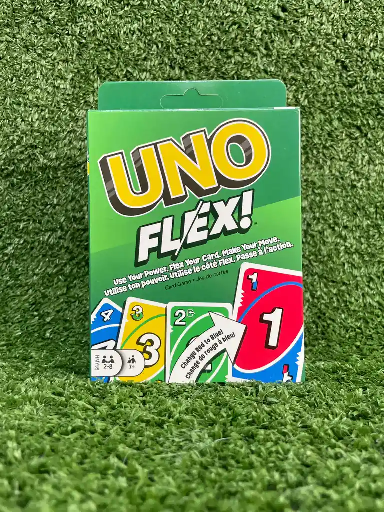 El juego de cartas UNO Flex se basa en el juego UNO clásico que enamora a pequeños y mayores, pero es algo más flexible. Las cartas especiales permiten a los jugadores cambiar el color de una carta para que coincida con otra: un 4 rojo puede convertirse en un 4 verde al instante. ¡Las cartas de poder y las cartas especiales Flex añaden aún más posibilidades al juego! Perfecto para dinamizar fiestas y noches de juegos en familia, es un regalo ideal para los fans de UNO y los amantes de los juegos de cartas a partir de 7 años. Los colores y la decoración pueden variar.  ¡El juego de cartas UNO ahora es más flexible con UNO Flex!  El juego se basa en el juego clásico, pero incluye algunos cambios especiales, como las cartas Flex que permiten a los jugadores cambiar el color de una carta. La carta de poder permite a los jugadores "tener más flexibilidad" a la hora de cambiar el color de una carta si esta tiene un "tic" verde si tiene una "X" de color rojo, tendrán que esperar. La carta Roba dos Flex obliga a los demás jugadores a robar una carta. Con la carta Roba cuatro Flex, el jugador puede elegir qué persona tendrá que robar 4 cartas. El comodín Todos roban Flex obliga al resto de jugadores a robar 2 cartas y la carta Pierde el turno Flex salta a TODOS los jugadores. UNO Flex está diseñado para que jueguen de 2 a 6 personas a partir de 7 años y tiene muchos camios y sorpresas, por lo que se trata de un juego divertido para reunir a familiares y amigos y pasar la noche jugando.  Medidas packaging: 15x2x10