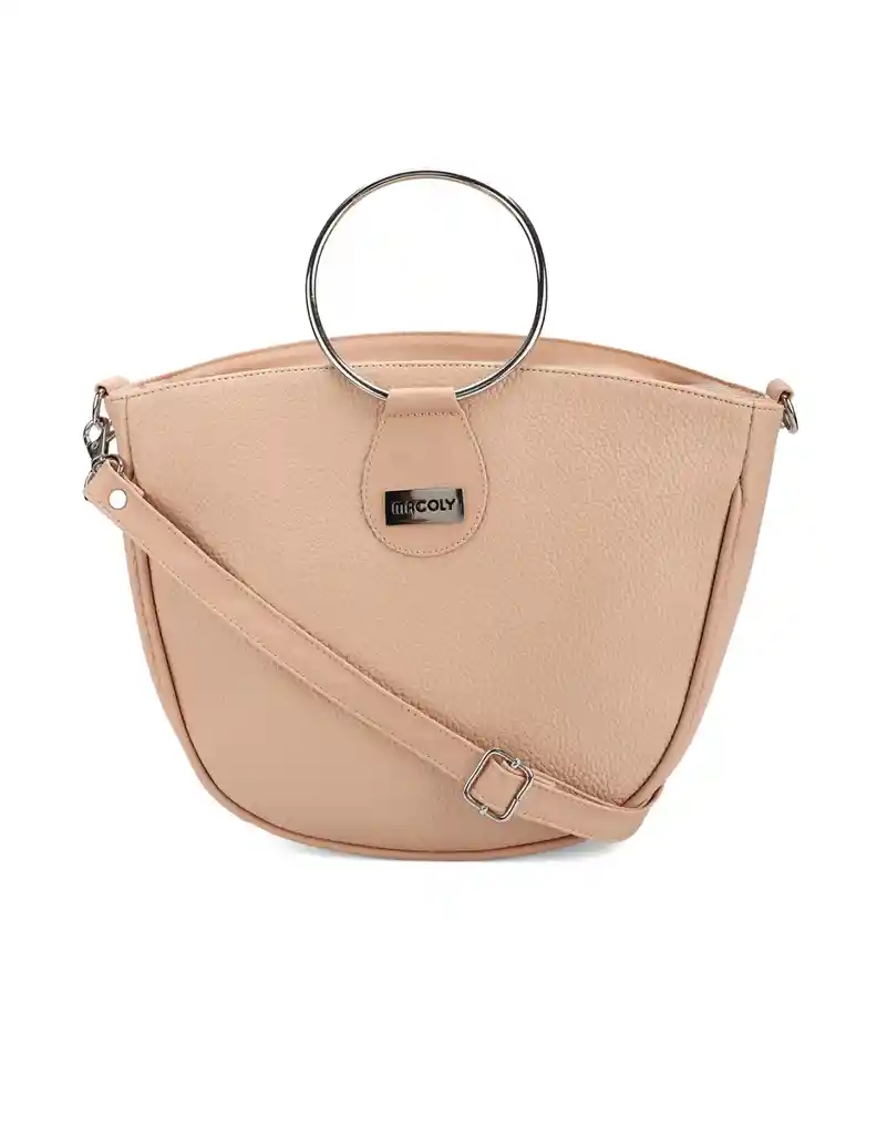 Cartera manos libres tipo canasta mostaza MACOLY, elaborado en sintético (poliuretano), diseño casual con textura de reptil. Detalles alusivos a la marca y finas costuras visibles. Tiene compartimiento amplio, bolsillo interno, cierre de cremallera, correa manos libres y herraje de mano circular. Sus medidas son alto 23 cm, ancho 25 cm y fondo 8,5 cm. producto colombiano