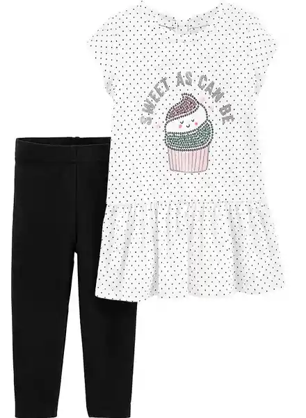 Con un Lindo Estampado de Cupcakes y un Dobladillo Con Peplum; Este Top Queda Muy Bien Sobre Unos Leggings a Juego Para un Atuendo Fácil y Lindo.