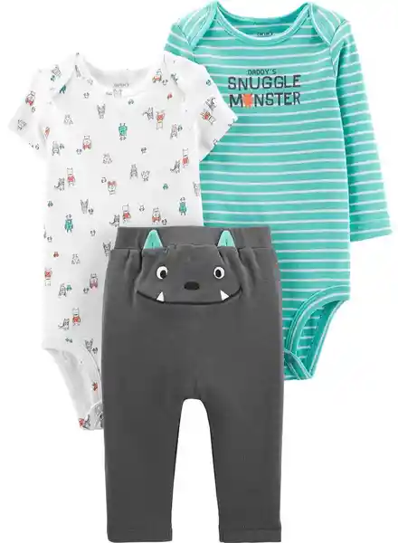 Con un Lindo Monstruo Bordado en la Parte Inferior y Dos Monos a Juego; Esté Ajustado Conjunto de Algodón le Permite Combinarlo Con Pantalones Esenciales.