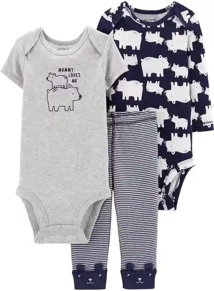 Con Puños de Pierna de Oso Bordados y Dos Monos a Juego; Este Conjunto de Algodón Suave y Sedoso le Permite Combinarlo Con Pantalones Esenciales.
