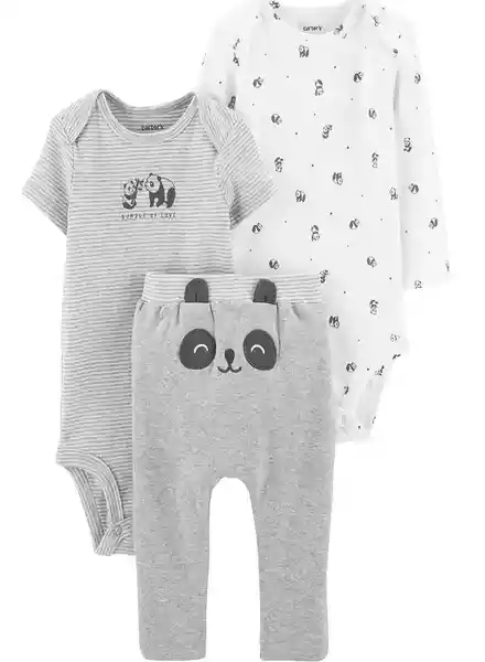 Con un Dulce Panda Bordado en la Parte Inferior y 2 Body; Este Set de Algodón te Permite Mezclar y Combinarlo Con Unos Lindos Pantalones.