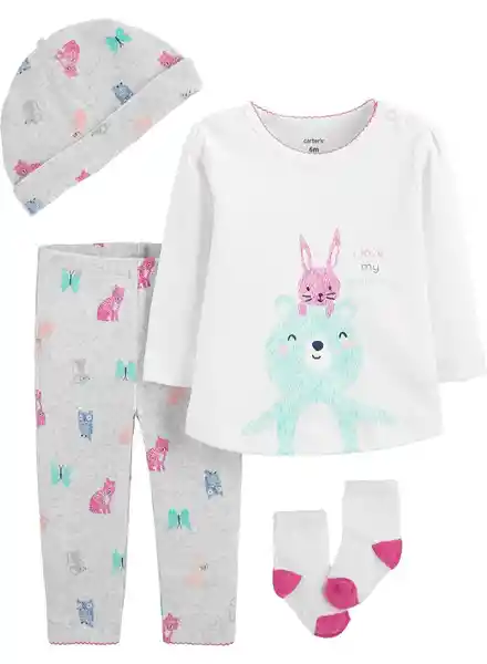 El Conjunto Perfecto Para tu Bebé; Este Conjunto se Completa Con Una Camiseta de Oso; Pantalones; Gorra y Calcetines a Juego; Todos Confeccionados en Algodón Suave y Cómodo.
