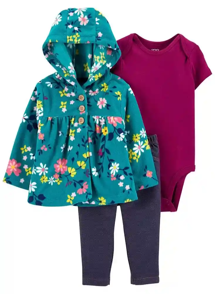 Conjunto Incluye Carter's Abrigo 1 Und + Carter's Pantalón 1 Und + Carter's Body 1 Und. Hecho a Juego; Este Conjunto se Completa Con un Cárdigan de Flores; un Mono Sólido y Pantalones de Mezclilla de Punto.