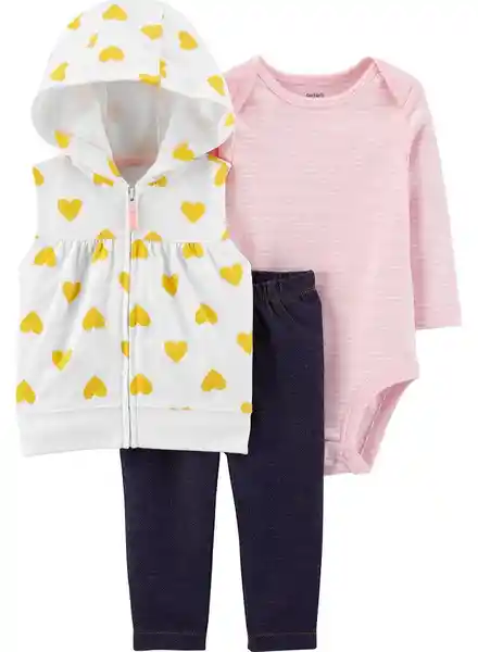 Conjunto de 3 Unidades. El Atuendo Perfecto; Este Conjunto se Completa Con un Body de Manga Larga; Pantalones Sin Cordones y un Chaleco Con Forma de Corazón Para Completar el Look.